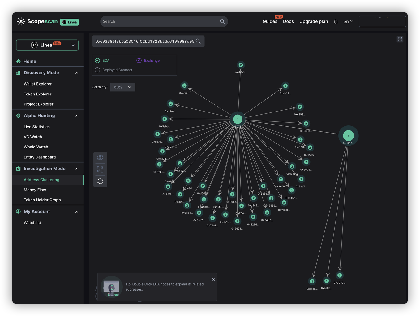 When Scopescan added Linea to its lineup of supported blockchains, it looked into all the addresses of this chain and the relationships between these addresses. This way, Scopescan users will be able to see the behavior of any user on the Linea chain, and then discover connections between these users. When Linea ecosystem projects leverage this entity-related information, they can understand their users better and fine-tune their strategies to grow their user base.